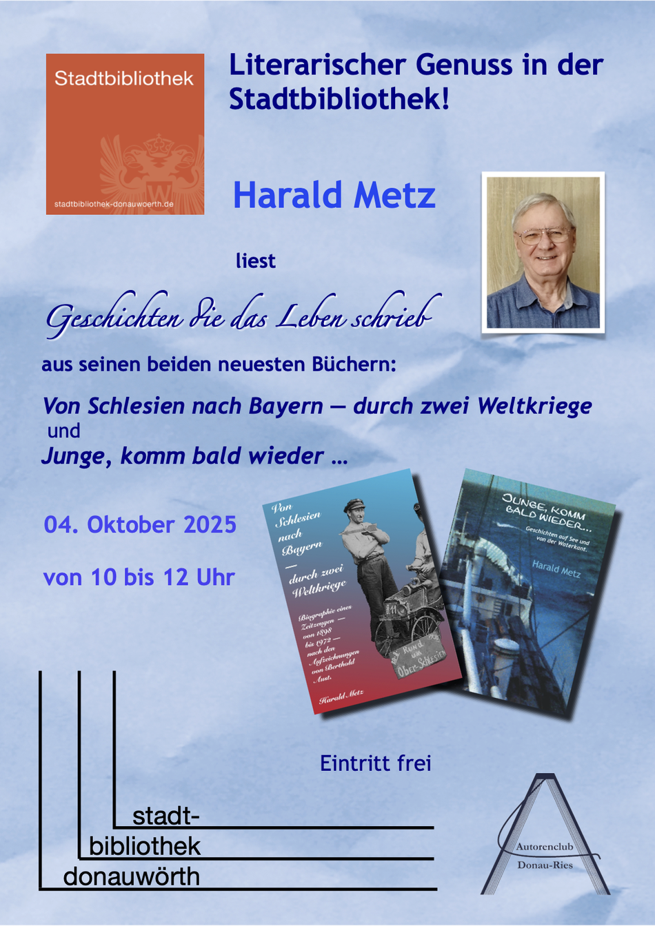 Über den unten stehenden Button findest Du ebenfalls die aktuellen Veranstaltungstermine des Autorenclub Donau-Ries, auf dessen Homepage.